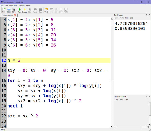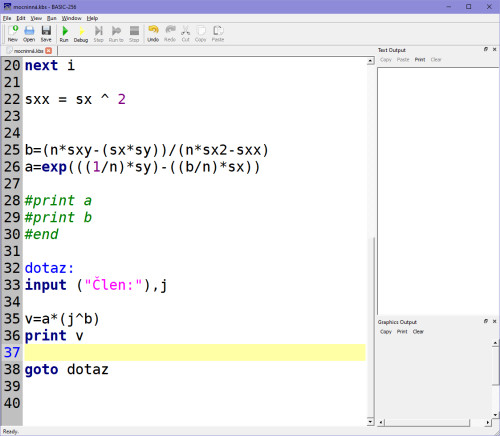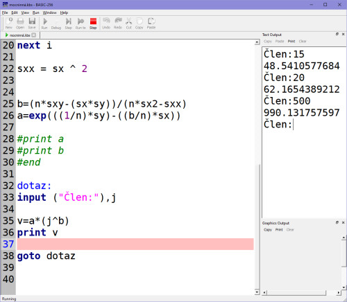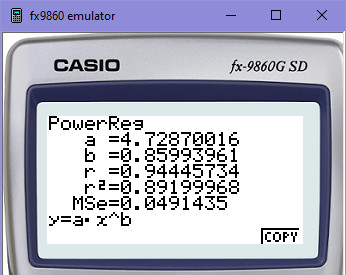 Nemůžeš si nevšimnout, že jsou ve výsledcích drobné rozdíly. Zatímco kalkulačka spočítala koeficienty na A=4.72870016, B=0.85993961, ve výstupu Basicu-256 je více desetinných míst. Je to dáno nepřesností, resp. přesností, na kterou jsem v souvislosti s jazyky upozorňoval. Přece jen výpočet koeficientů je relativně náročný a projde několika logaritmy, ve výsledku se umocňuje na koeficient B, který může být už sám o sobě nepřesný (je v něm 6 logaritmů než se spočítá). Není samozřejmě důvod k panice. Ale udělejme si spolu malý exkurz - jako by to byla myšlenková výprava do budoucnosti.